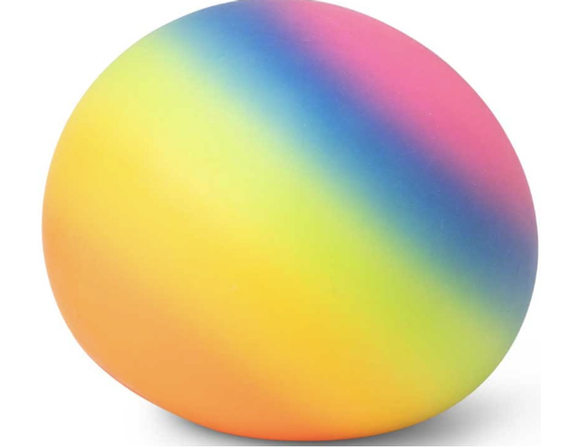 Extra large stress ball fidget toy that’s very squidgy and stretchy, and features a rainbow design. This brightly coloured groovy glob is the perfect tool to help anyone unwind and relieve stress. It’s great fun and irresistible to squeeze.
